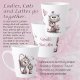 These adorable cat illustrations feature whimsical, fluffy cute kitties with oversize expressive eyes, they feature soft pastel tones, in heart-filled scenes that captures the playful and loving personality of cats. The text caption is fully editable to allow customisation to fit your occasion or need. This hot beverage mug is perfect for cat lovers, animal lovers, and fans of hand drawn and kawaii style artwork, A heartwarming kitten design that will capture the heart of anyone you may wish to gift it to. It can be a perfect gift for a mother, sister, aunt, girlfriend, cat mum or anyone who loves animals, cats, or kittens.
