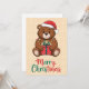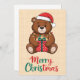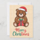 This enchanting design features an adorable brown bear wearing a Christmas hat and holding a festive red gift with white polka dots, surrounded by a colorful twinkling garland. With its soft and warm expression, this teddy bear perfectly embodies the spirit of the holiday season. The 'Merry Christmas' message in a classic red and green style adds a universal festive touch, ideal for spreading Christmas joy. Perfect for various products such as greeting cards, t-shirts, mugs, and more, this design is designed to put a smile on the faces of young and old during the holiday season!