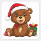Adorable Christmas Bear With Santa Hat Square Sticker
