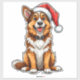 A cheerful illustration of a cute dog wearing a Santa hat, radiating holiday joy and warmth. Perfect for Christmas-themed projects, holiday cards, or festive decor designs.
