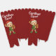 An adorable Christmas elf in green outfit and red hat, holding a gift box with a cheerful smile. Perfect for wrapping paper, holiday gift, seasonal collections, Christmas products, supplies and gifts.