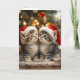 Do you love cats? Two adorable, cute kitten with lovely faces - one white, one black, wearing Santa hats and cuddle under the Christmas tree in the living room. Wonderful an cute motif for the season - fits for everyone! Custom text and image.