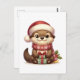 Adorable Christmas Otter in Santa Hat With Present Postcard