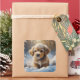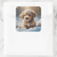 Adorable Christmas Puppy on a Snowy Night Square Sticker