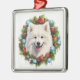 ADORABLE CHRISTMAS SAMOYED DOG WREATH METAL TREE DECORATION