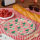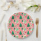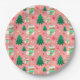 This soft pink holiday design features festive Christmas trees, stockings, and stars pattern, perfect paper plates for party.