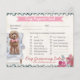 Make a pawsitive impression with this adorable Dog Grooming Report Card featuring a sweet puppy illustration and a stylish, floral-accented design. Perfect for professional pet groomers, this customisable card allows you to easily add your grooming salon’s name and web address, making it a personalised touchpoint for your clients. The card includes a detailed checklist of grooming services such as bath, blow dry, nail trimming, and more, ensuring your customers stay informed about their furry friend’s spa day.