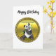 Adorable cute panda bear eating bamboo evergreen card