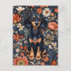 Adorable Dachshund Surrounded By Vibrant Flowers Postcard