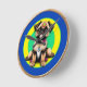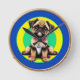 Cute dog wearing a decorative collar and vibrant accessories, set against a colourful circular background, exuding charm and creativity, perfect for pet-themed and decorative artwork.