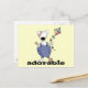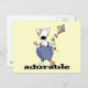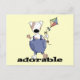 An adorable white and brown spotted dog with a chubby belly wearing denim overalls flies a kite and black text reads "Adorable" on Adorable Dog T-shirts, hoodies, bodysuits, hats, mugs, cards, stickers, keychains, and more.