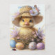 Adorable Duckling Straw Hat Easter Egg Flowers Postcard