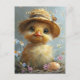 Adorable Duckling Straw Hat Easter Egg Flowers Postcard
