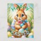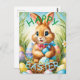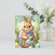 Adorable Easter Bunny Rabbit in Basket with Eggs Postcard