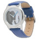 The blue band is the right color for a boys watch.  My grandson loves lacrosse and the watch is easy to put on.  He is ten years old. The lacrosse picture is very clear and I like the blue hands on the watch.  It's good for teaching time.