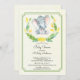 Cute elephant baby shower featuring a adorable watercolor elephant adorned with jungle leaves set on a watercolor texture background for a girls baby shower, boys baby shower or gender neutral baby shower.