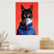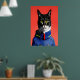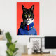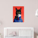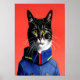 Portrait of a cute and adorable firefighter cat on a red background. This is a AI generated art.