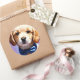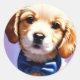 Adorable Fluffy Puppy w Cute Blue Bow Tie Classic Round Sticker