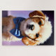 Adorable Fluffy Puppy w Cute Blue Bow Tie Jigsaw Puzzle