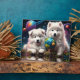 Adorable Fluffy Samoyed Puppies, Space Earth Globe Plaque
