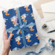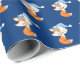 This adorable Christmas gift wrap features a blue background with a cute pattern of a fox that has a blue santa hat on and a blue ribbon. It's the perfect Christmas wrapping paper for kids.