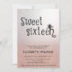 Adorable charming girly cat rose gold glittery ombre Sweet 16 invitation.