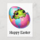 AI generated funny cute adorable baby frog sits in a hatched Easter egg