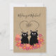 Adorable cute funny floral cartoon cats in love burlap wedding design.