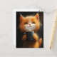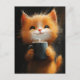 An adorable ginger cat with a steaming hot mug of coffee fantasy art