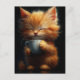 An adorable happy ginger cat with a mug of coffee fantasy art