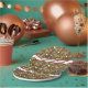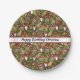 Paper plates feature tiny gnomes amidst mushroom houses and forest greenery. Personalise with name or custom greeting.
