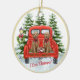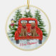 You could just fall in love with this scene -- the adorable Goldendoodle puppies; the vintage red truck with the snow covered trees in the background and the lamppost with the holiday wreath. "I Love Christmas" is the message -- and you can add the year and family name. Have this for your own Christmas tree or as a special gifts. Any design issues or questions, just email: charmdesignstudio@rcn.com and we will be delighted to assist .