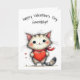Adorable Gray and White Cat Happy Valentine's Day Card