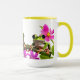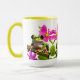 Adorable Green Frog Surrounded by Pink Flowers Mug