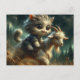 An adorable cute grey and white kitten riding a white goat fantasy art