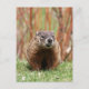 This charming postcard captures a groundhog in its natural habitat, set against a backdrop of colourful branches and lush greenery. Its curious expression and warm tones make it an endearing piece for wildlife enthusiasts. Send a message with a touch of nature's charm to brighten someone's day.