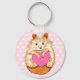 Adorable hand drawn and coloured hamster illustration and hearts key chain.