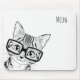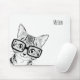 Adorable Hand Drawn Nerdy Cat Art White Mouse Pad