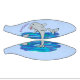 Cute dolphins frolicking in the ocean in adorable cartoon style. Lots of ocean fun for kids!