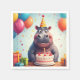 Adorable Hippo Celebrating Birthday with Cake Napkin