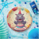 Illustration of a cheerful hippo enjoying a birthday party surrounded by balloons, gifts, and a colourful cake with lit candles. Perfect for themes of celebration, fun, and animal characters.
