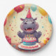 Adorable Hippo Celebrating Birthday with Cake Paper Plate