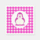 Adorable Hot Pink Gingham and Smiling Pink Penguin Napkin