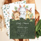 Cute watercolor jungle safari baby shower design featuring an adorable giraffe, lion & elephant with jungle leaves on a dark green background. Perfect for a girls baby shower, boys baby shower or gender neutral baby shower. Visit our shop to view this design with individual animals.
