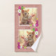 Hand towel for kids! Adorable kitten cuddling with a tiny baby bunny. Soft colours in beige and pink. Cute motif for every little child! Personalised gift idea for any occasion.