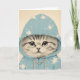Adorable Kitten in a Pastel Blue Hoodie Card