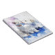 Adorable, colourful image of a Labrador puppy and kitten kissing on a blue and purple background.