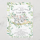 Cute baby shower invitation featuring sweet triplets Koala bears with mum framed with natural green watercolor leaves set on a white background. Flip our invite over to view a matching green leaf back for an extra special touch..
