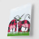 This adorable ladybug is wooing his new love by gifting her a pink textured daisy. They stand in green grass with blue skies above. Original artwork by, One Artsy Momma.