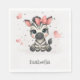 Cute baby shower or birthday paper napkin featuring adorable little female zebra wearing a cute pink bow with some love hearts